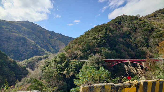 在90K左右遇見每兩小時放行10分鐘的管制,下一次可以通行還要一個半小時。我打算靠邊停,還沒熄火,一個小姐走來指著旁邊一條下坡進入民宿的路,說了一句話,似乎是「溪底有路」,我猜應該有路可以繞過去。