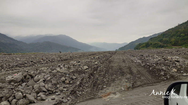 也因為的確有看到車子往那邊走,也恍然為何都沒有車子排隊,於是就沿著下坡路前行,真的是開到蘭陽「溪底」了, 有點懷疑這真的有路嗎?直到轉彎,看見前方有車,才放了心。