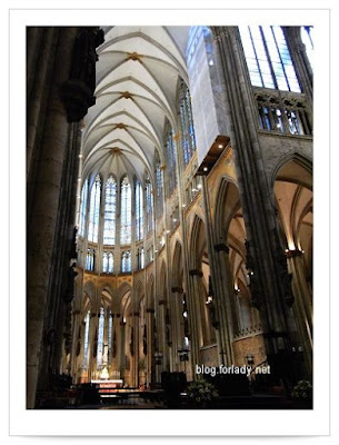 由於天冷下雨,我們出了車站就躲進了教堂中,沒想到從教堂內部更體會它的大,高聳的屋頂一氣呵成,真的很高呀!在德國的小鎮中,基本組合元素是廣場、市政廳與教堂,廣場與市政廳大致都雷同,但教堂卻會因為地域教派不同,而有不同的風格。