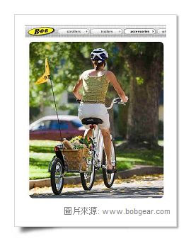 拖車看起來真是不錯,如果我家不是在山上,如果台北的路也是像國外一樣對單車友善的話,像下面圖片上,拖個拖車上面放個竹籃去買菜,或者騎去花市買花,我還滿想嘗試看看。