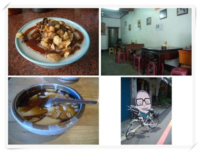 ↓客家碗粿加菜脯的單純滋味,與南部的碗粿不同,現在已經很少吃到了。而豆花以黑糖為特色,不難吃,但是並不特別,騎車很熱所以得吃吃冰豆花,害我想吃建中黑糖冰。