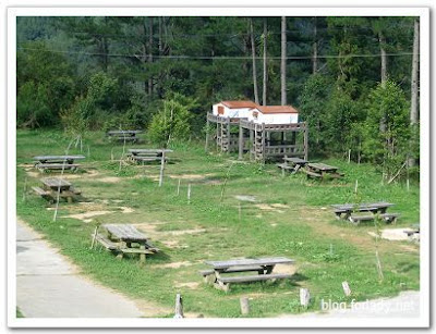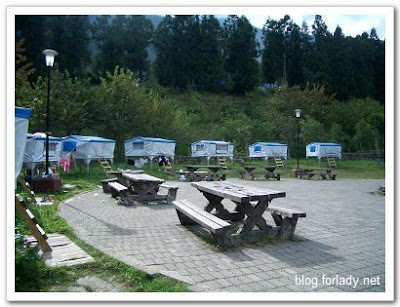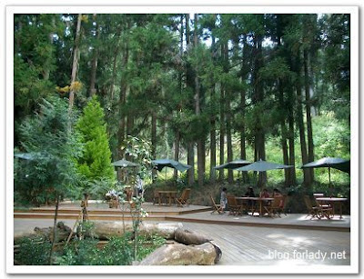 在管理中心旁有處咖啡區域,可以在旁邊買杯咖啡,或者自己攜帶野餐來此,坐在群樹環繞中,聽聽音樂聊聊天,誰會相信正在高山上露營。此區域還有HIINET付費無線網路區,但是看來不是很穩定,我一直無法連線,詢問後知道不是每個人都可以順利連線的,不過來此無線網路並不是重點,連不上也沒關係。