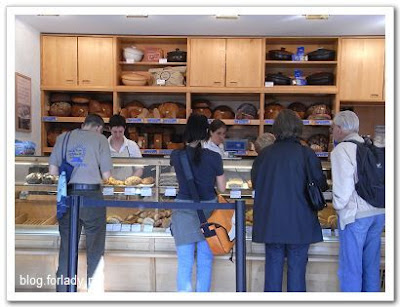 麵包店裡賣著各式麵包,外表都是硬硬的,可以不用塑膠袋直接放到環保袋裡,我喜歡這種單純滋味的麵包。