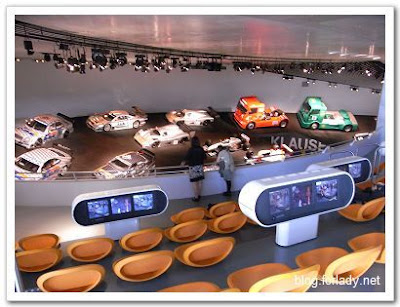 最後一層是未來車的展示,還有Cafe,遊客累了就可以坐在這裡抬頭看車,並且喝點咖啡好好休息,但由於消費太高,我們是能省則省,只好到大廳沙發上賴坐著,誰叫賓士博物館比想像的大很多,逛到腿快斷掉,硬是在門口沙發坐了快一個小時,讓雙腳恢復一下,然後搭公車去啤酒節。