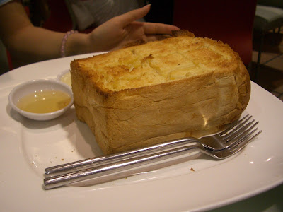 這麵包的名稱忘了,但很香,熱熱的,熱量不少,但跟波蘿油相比,還是吃這個吧~~