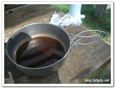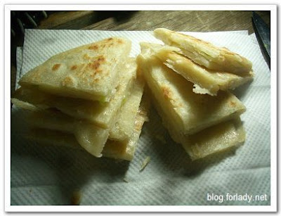 果然便利商店的東西讓我在吃的上面,很不滿足,於是在天即將黑時,興起了作蔥油餅的念頭。什麼道具都沒有之下,用大鋼杯和麵,塑膠袋加上手來塑形,也給我作出多層次香香蔥油餅。